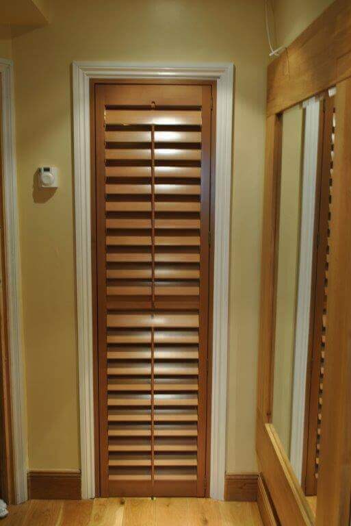 Many think of window shutters when looking to have bespoke shutters fitted to their home, but this is a great example of the many uses and versatility they have.