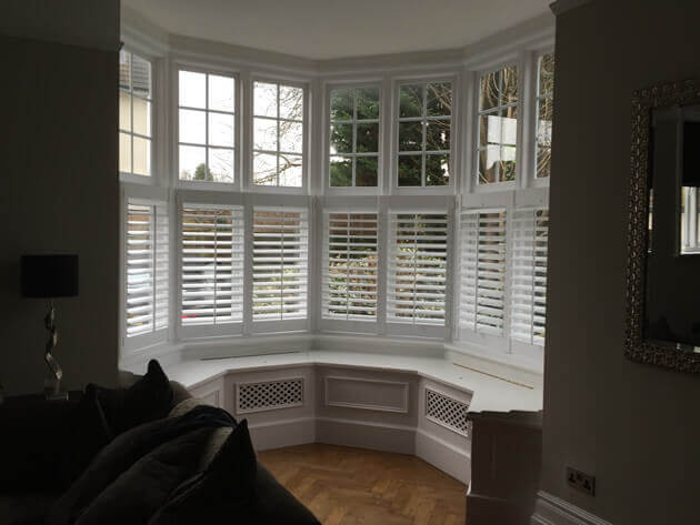 Shaun & Ben were in Thames Ditton, London to fit these Bay Window Shutters for a client. A solution was needed to add an extra level of privacy and security to the room while still allowing for ultimate light flow through the top of the windows.