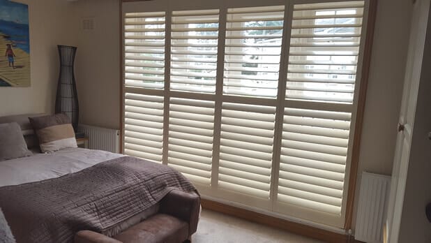 We were asked to design and install some shutters for a one bedroom apartment in Islington, North London. The client was looking to make the most of their apartment by creating a feature wall with the shutters against their floor to ceiling windows next to the bed. With limited space in this apartment, the shutters acted as the perfect window dressing compared to thicker curtains and also create a clean, luxurious feel.