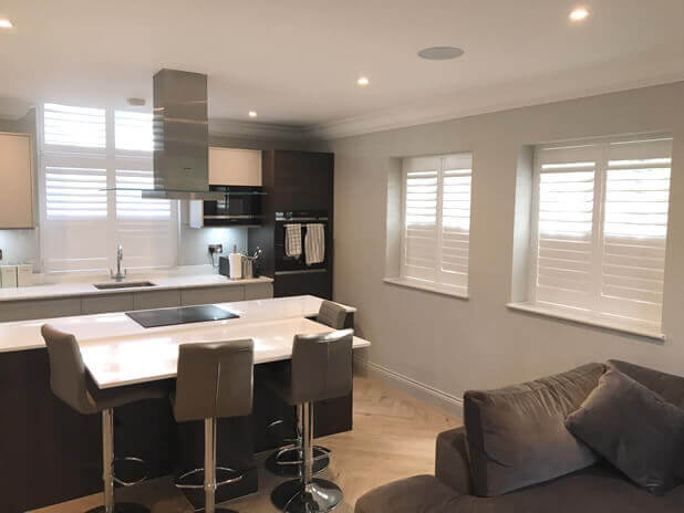 The homeowner of this modern property in Addlestone, Surrey was looking to have our shutters installed throughout their open plan kitchen and dining area.